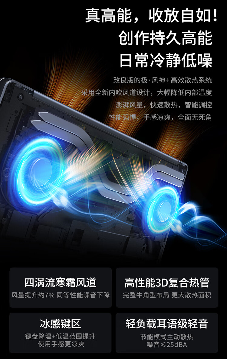 新版搭载 RTX 4050 独立显卡,在双风扇双热管内吹散热系统下可实现 115W 的整机性能释放。