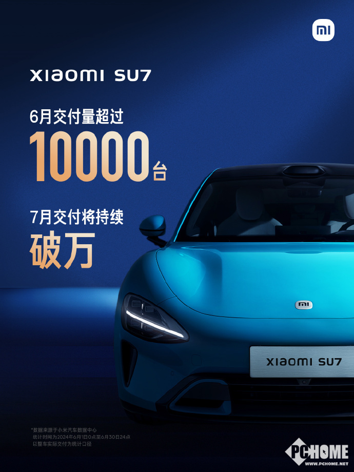时间来到2024年7月,各大车企纷纷披露上月的交付量数据。小米汽车官微对外表示,2024年6月,小米SU7交付量破10000辆,下个月的交付量将持续破万。