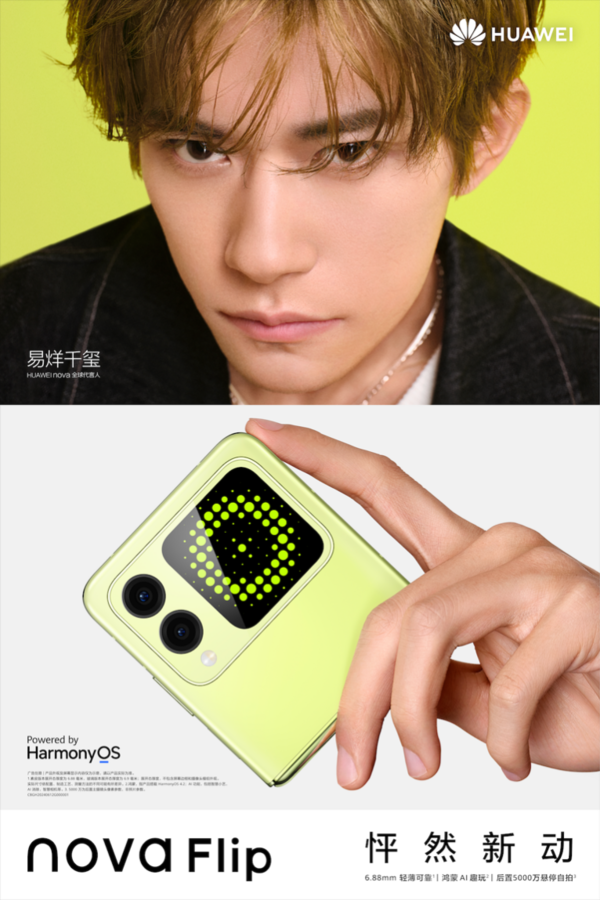 华为nova Flip曝光:潮流设计与先锋美学融合,易烊千玺B站秀新机