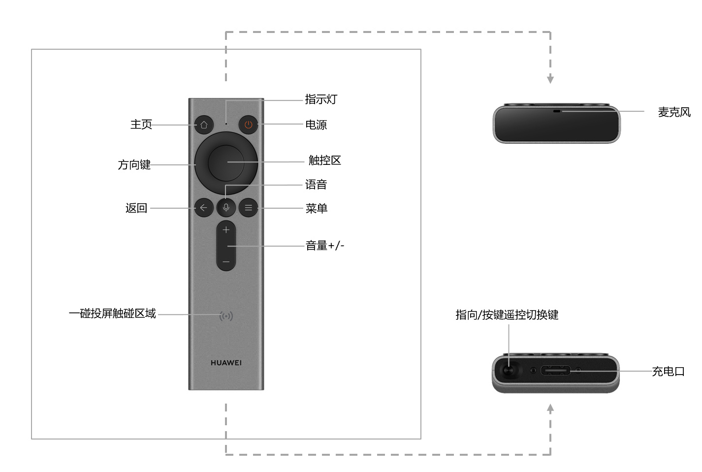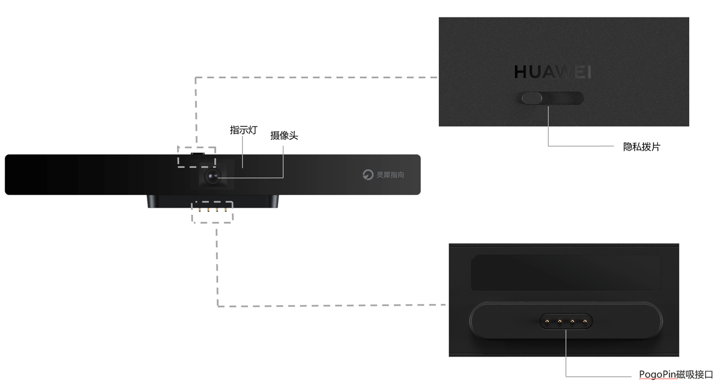 从博主放出的技术参数信息来看,华为灵犀指向遥控套装使用 UWB?与?IMU?联合定位技术,数据报点 120 Hz,将配备专属摄像头套件,底部设有触点接口,支持连接老款智慧屏设备。