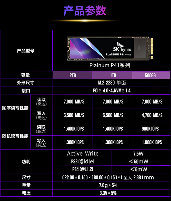 海力士 SK hynix 于 2022 年 5 月份推出了 P41 固态硬盘,7000 MB/s读速 + 6500 MB/s写速。