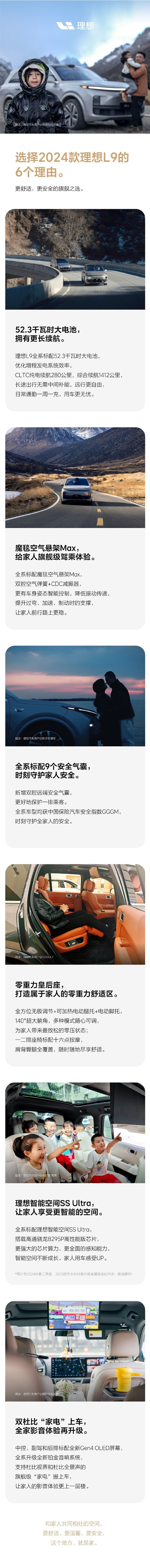 快科技3月25日消息,理想汽车官方今日发文,公布了选择2024款理想L9的6个理由。