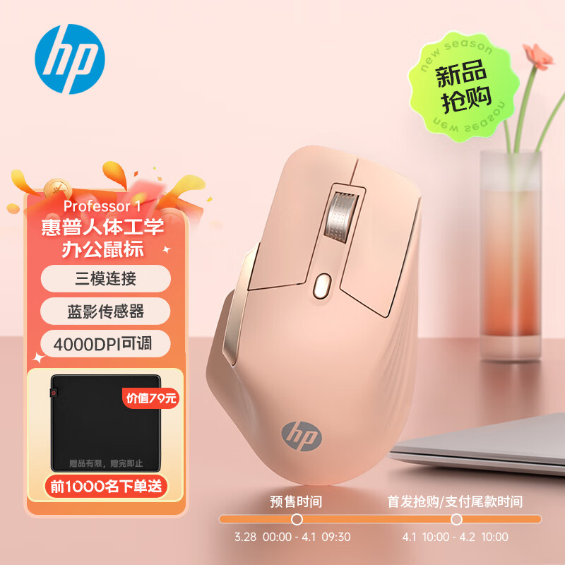 IT之家 3 月 31 日消息,惠普近日在京东上架了一款 Professor 1 三模蓝牙鼠标,可选黑白奶茶色,首发价?99?元,需要支付?10?元定金。