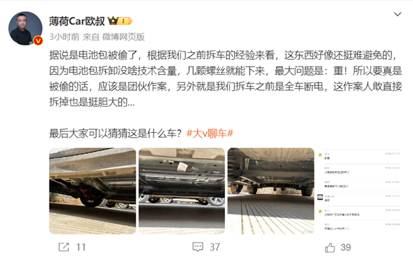 但也有一个问题,就是电池包特别重,如果真的被偷的话,应该是团伙作案。